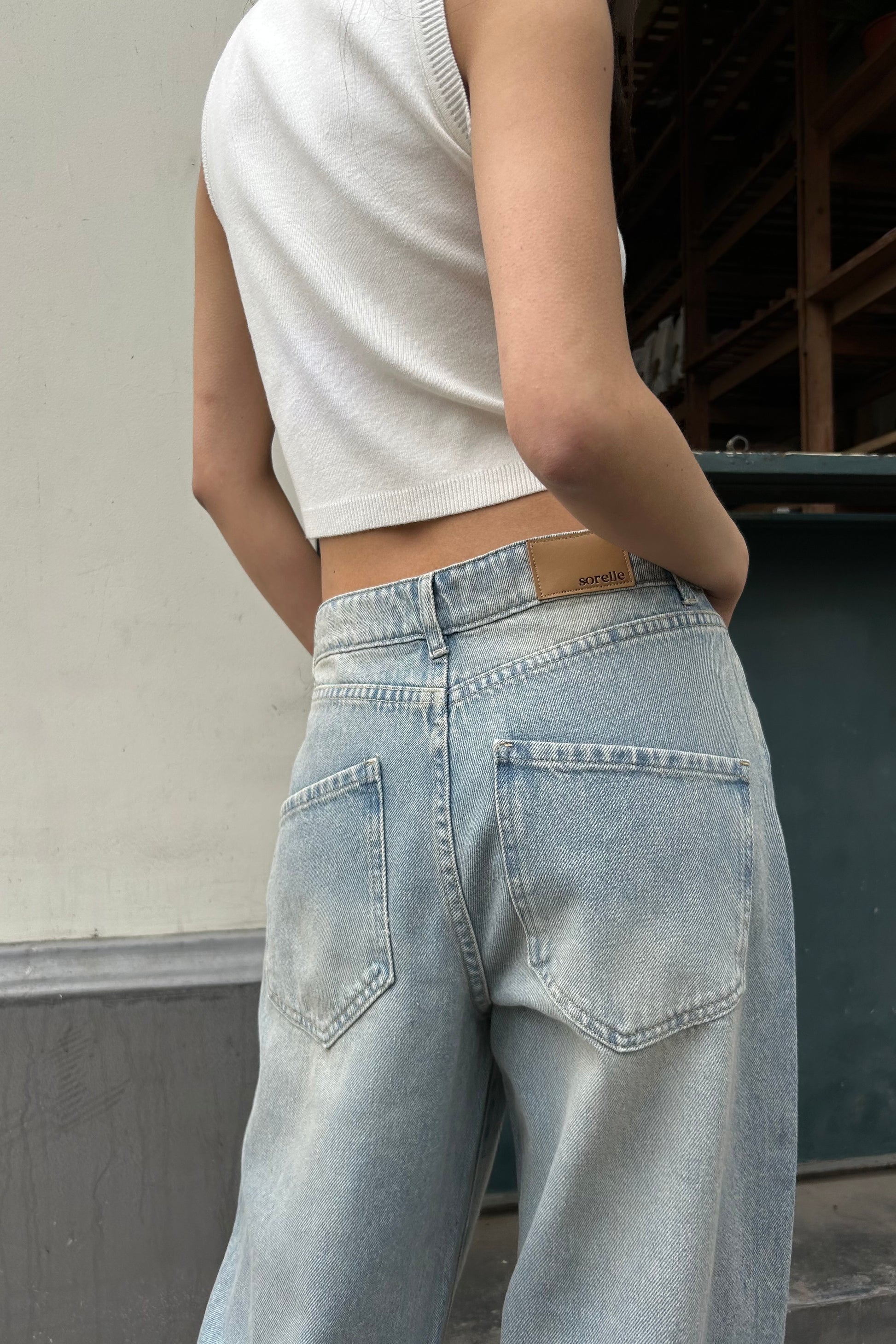 Elaborado en denim de algodón, con ese lavado vintage que combina con absolutamente todo.