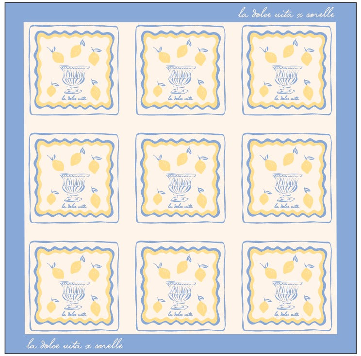Elaborada en seda Satin y con un diseño en colores amarillo y celeste que te transportarán al verano de Italia, la dolce vita.