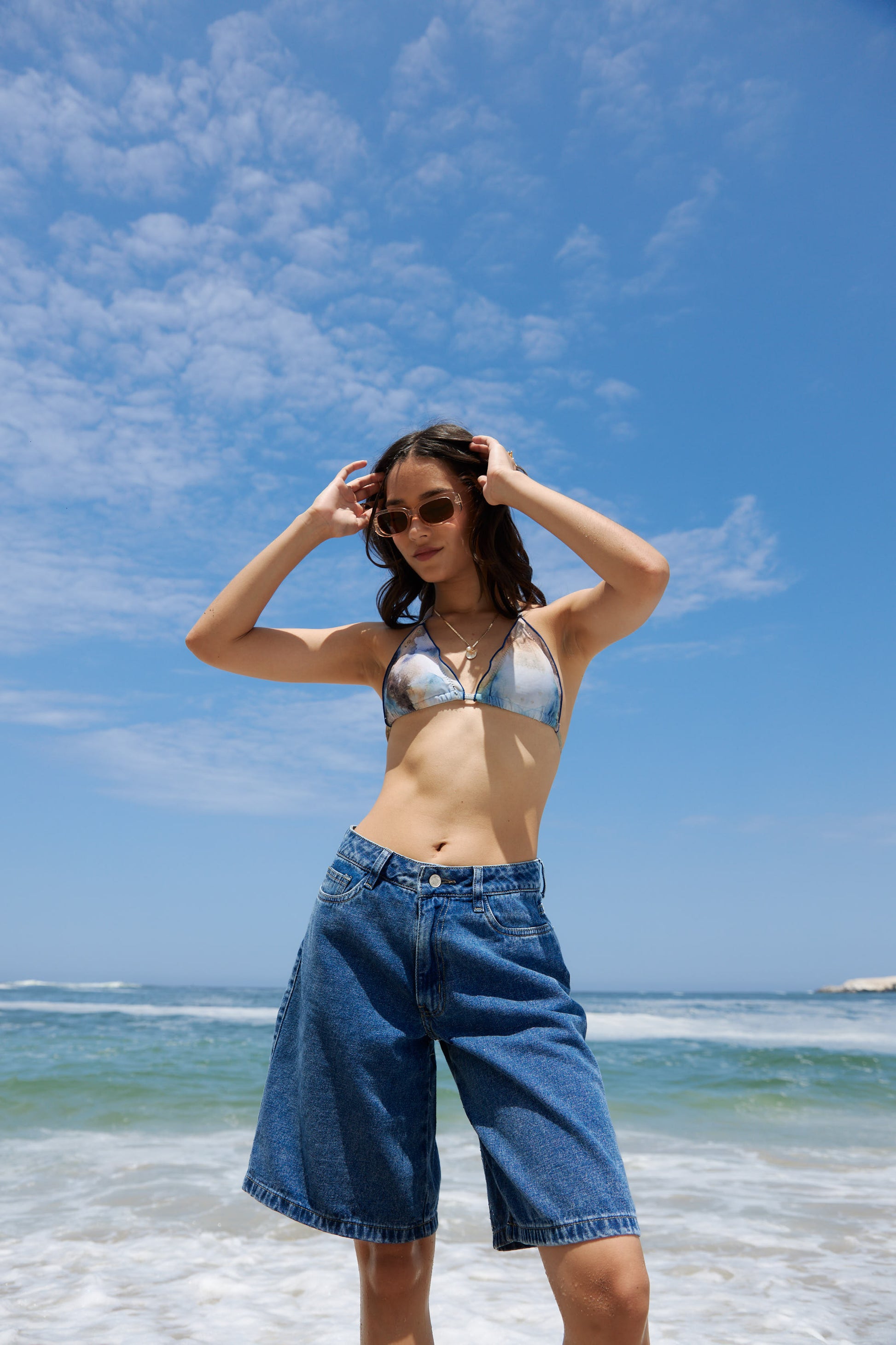 Elaborada en denim semi rígido, de fit relajado,  Perfecto para esos días en los que solo necesitas comodidad.