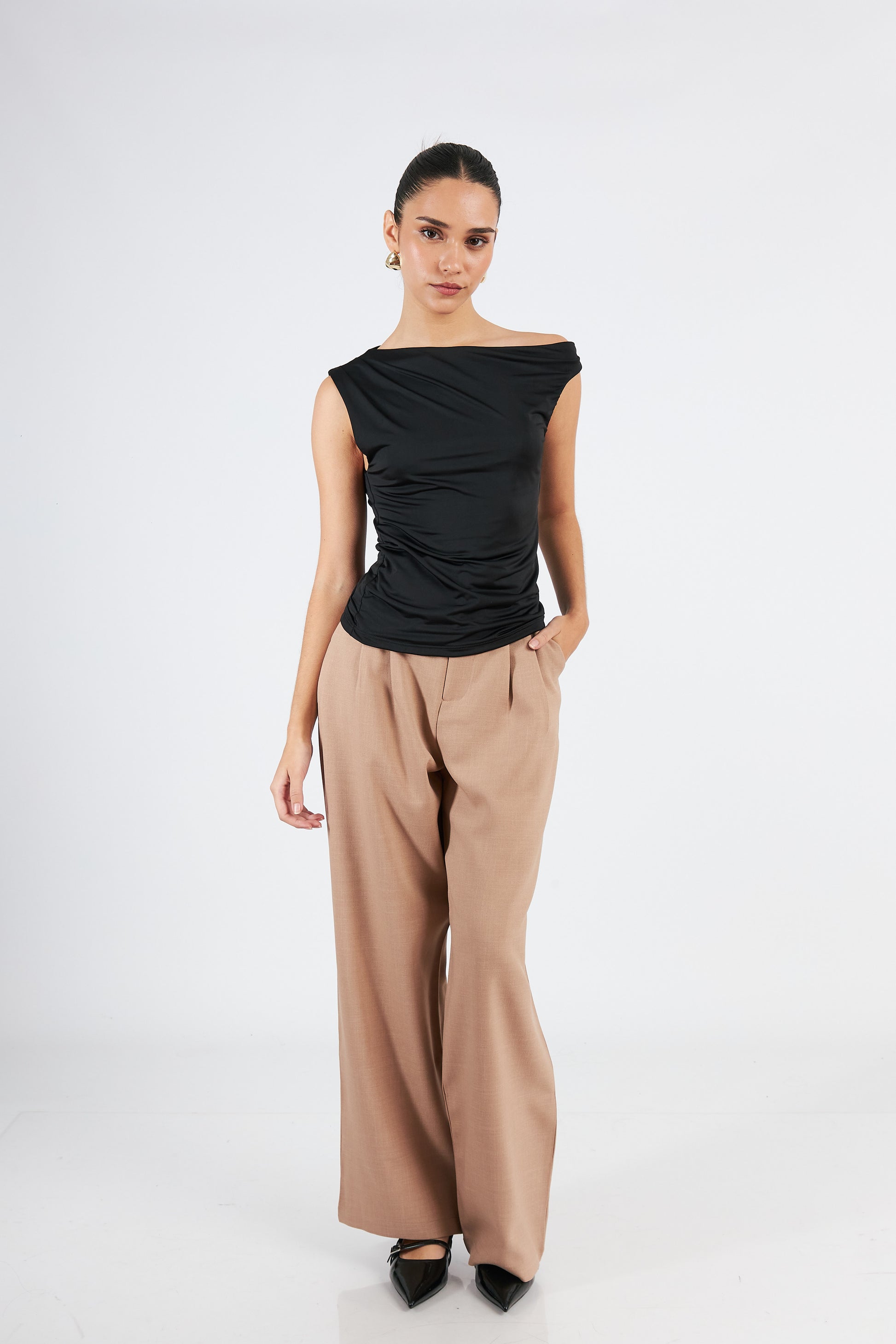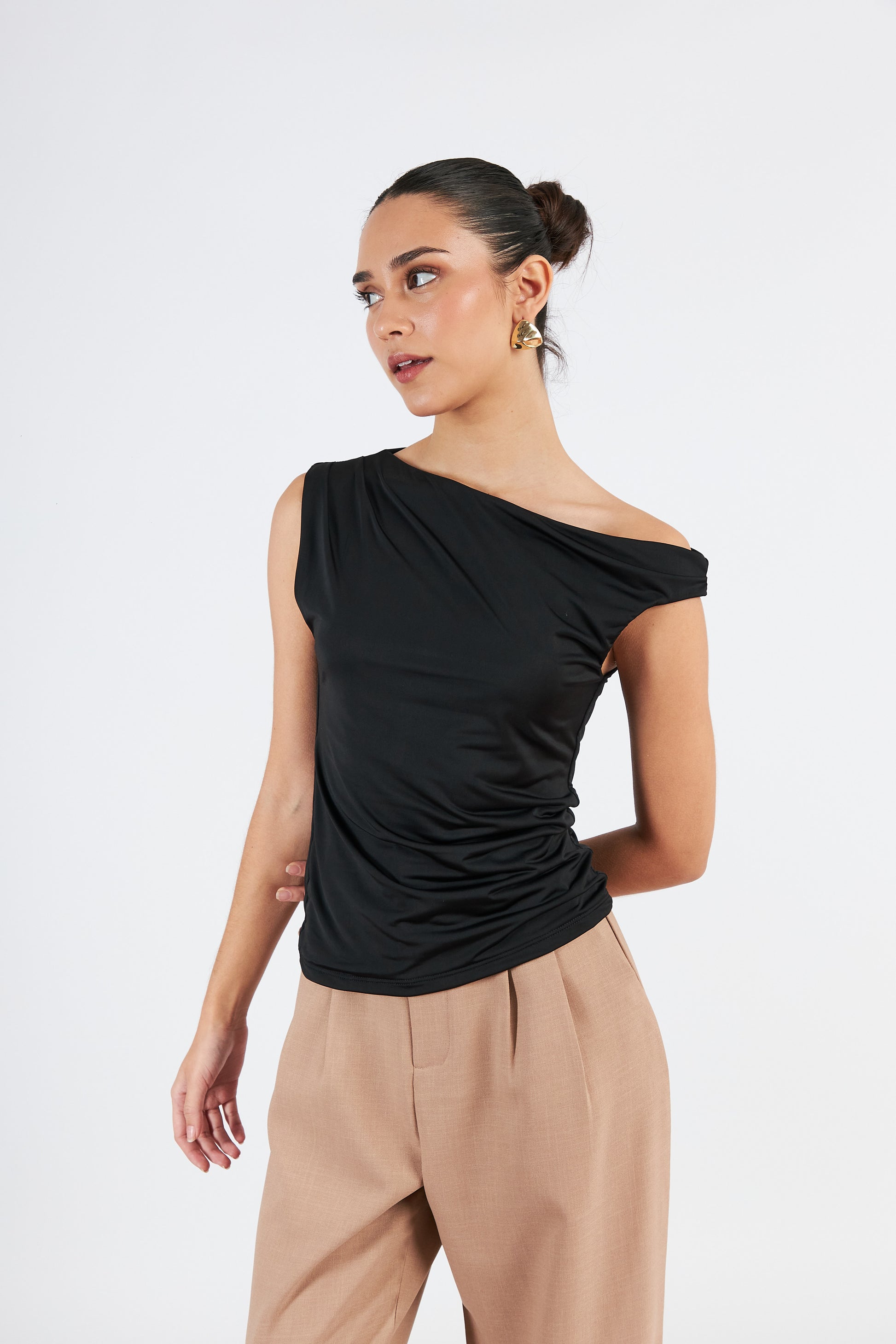 De escote asimetrico, esta prenda resaltará tus curvas, pues esta elaborada en tela venecia y es ceñida al cuerpo.