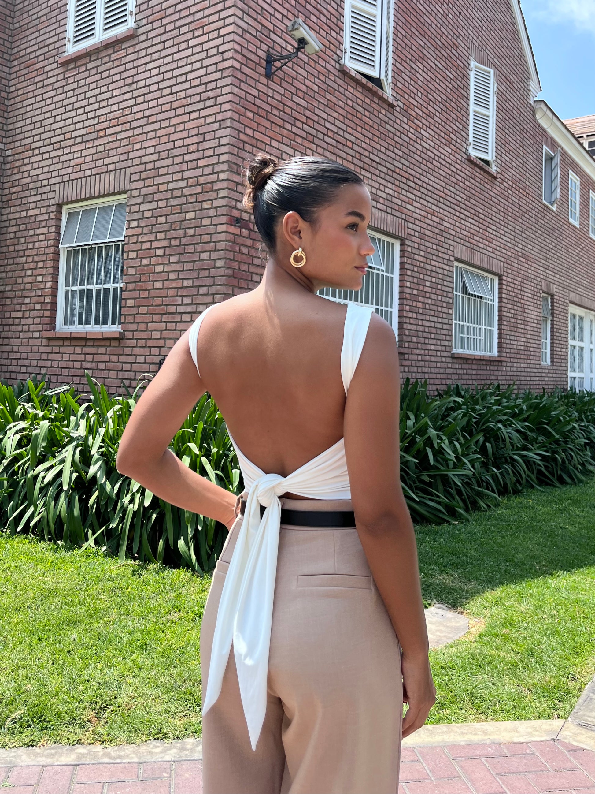 con la espalda descubierta y un lazo en la parte trasera, es la prenda perfecta para lucir tu feminidad.