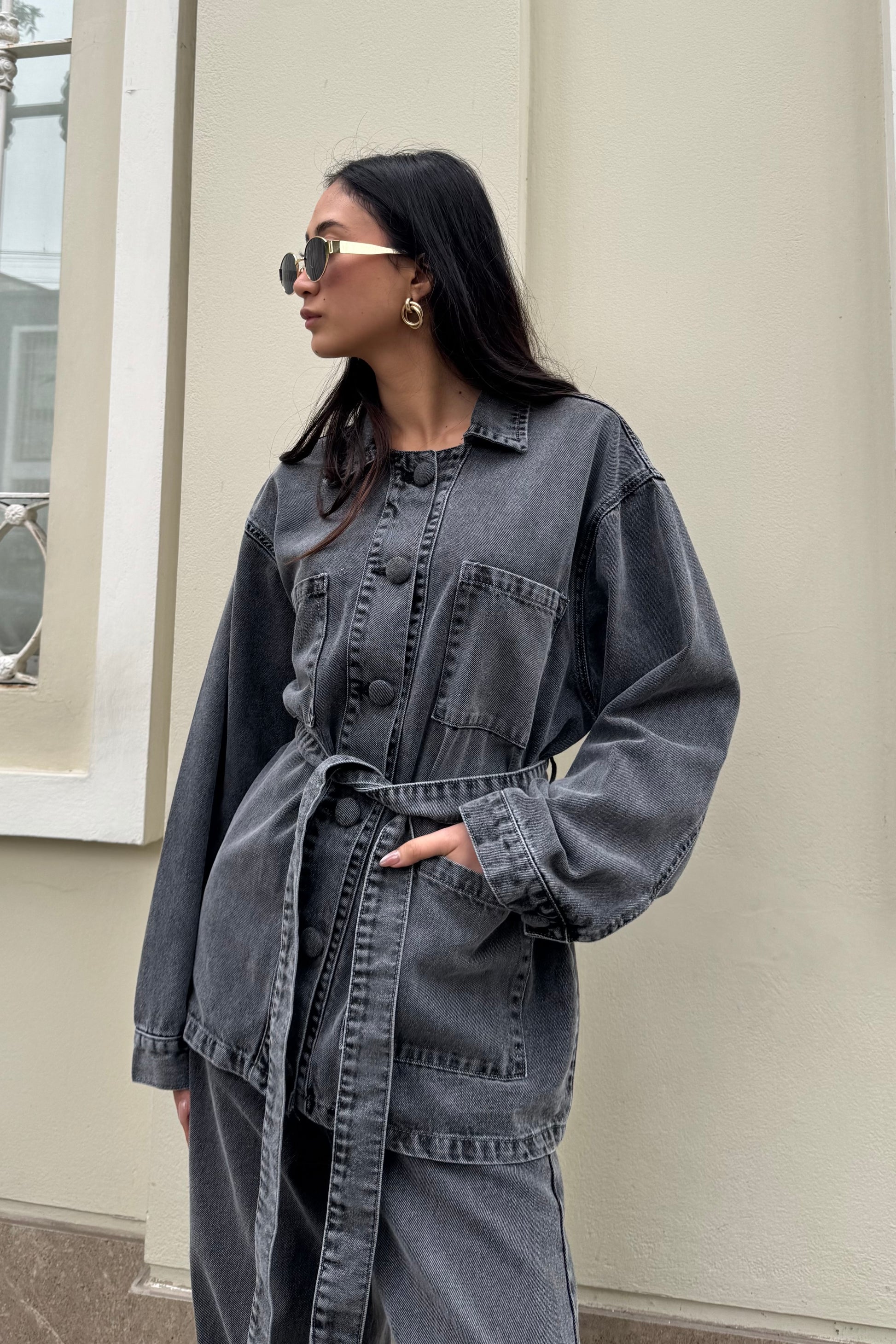 Elaborado en Denim rígido de 09 onzas , Su diseño tipo sobrecamisa la hace versátil para usar abierta o cerrada, y los botones forrados le suman un acabado limpio y cuidado.