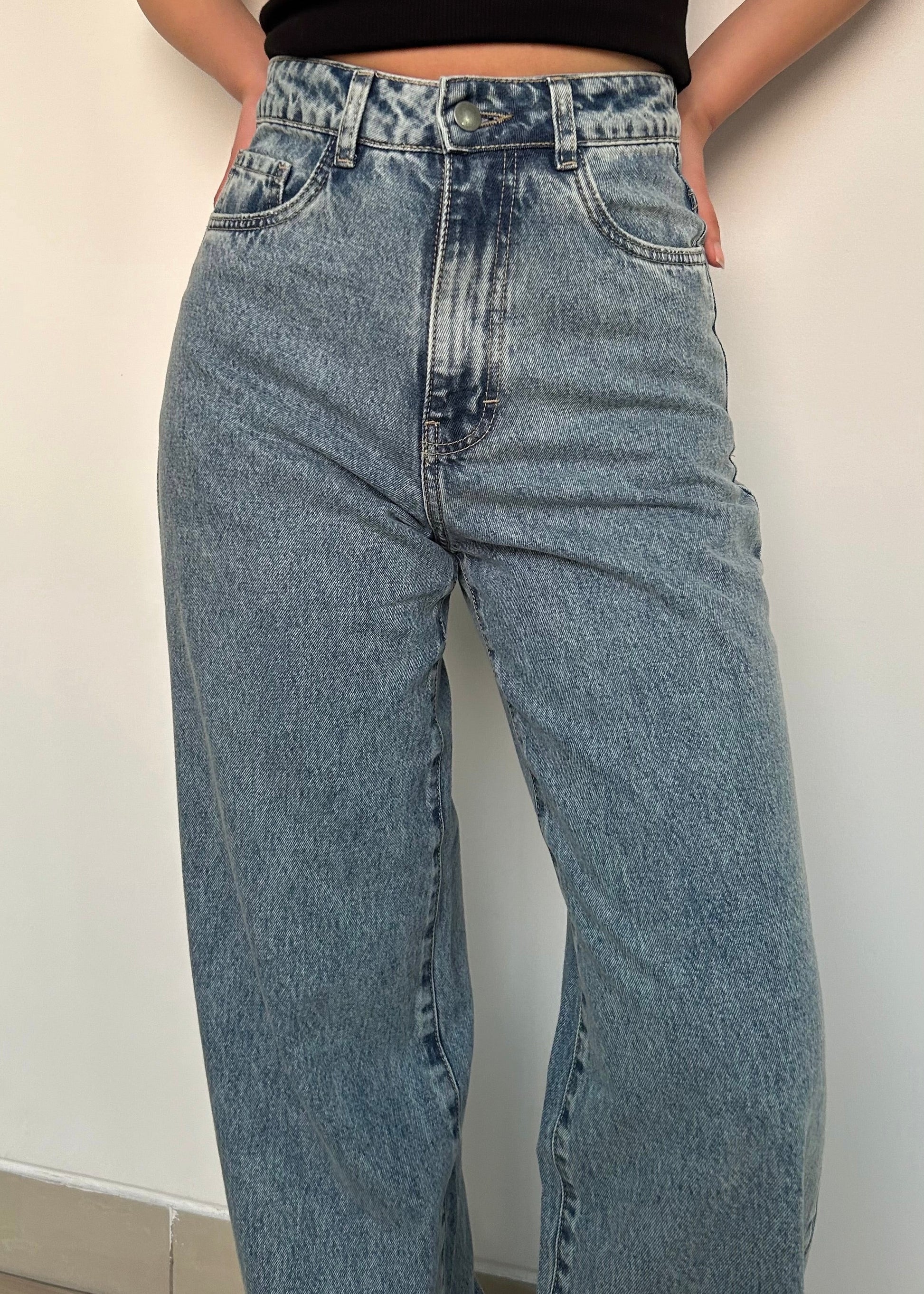 Detalle de desgaste denim en tono cromado, de corte recto, tiro alto que realza la figura, 2 bolsillos delanteros y posteriores, definitivamente tu nuevo denim fav ✨