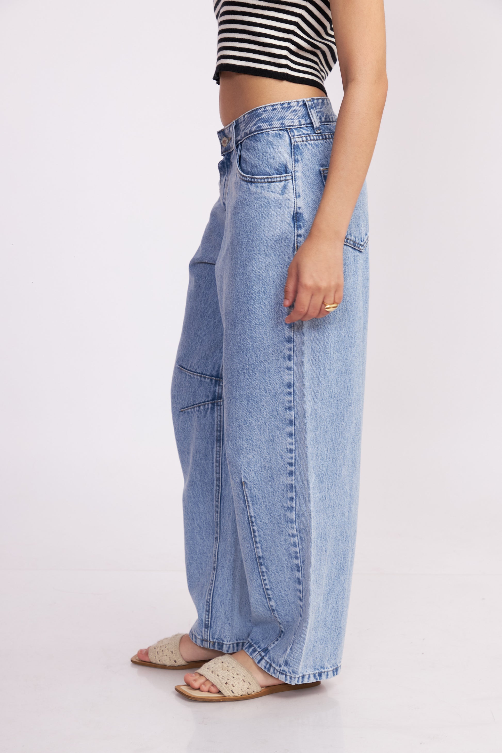 La forma de estos pants de corte globlo, crea una silueta única y es tan original que no necesitas de más, pues te armará todo el outfit.