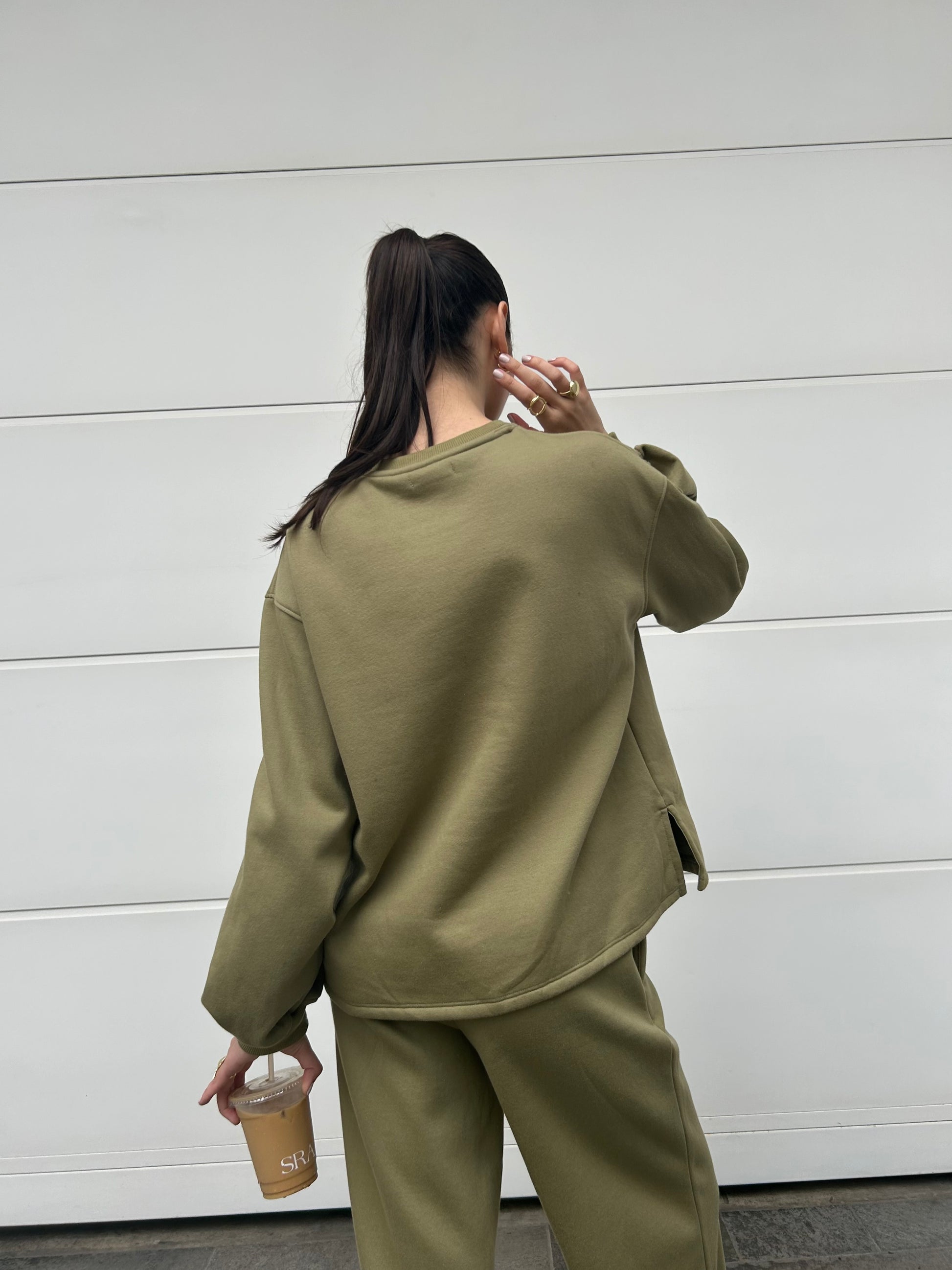 Cuenta con mangas abullonadas , aberturas en los laterales y una frase bordada en el pecho.