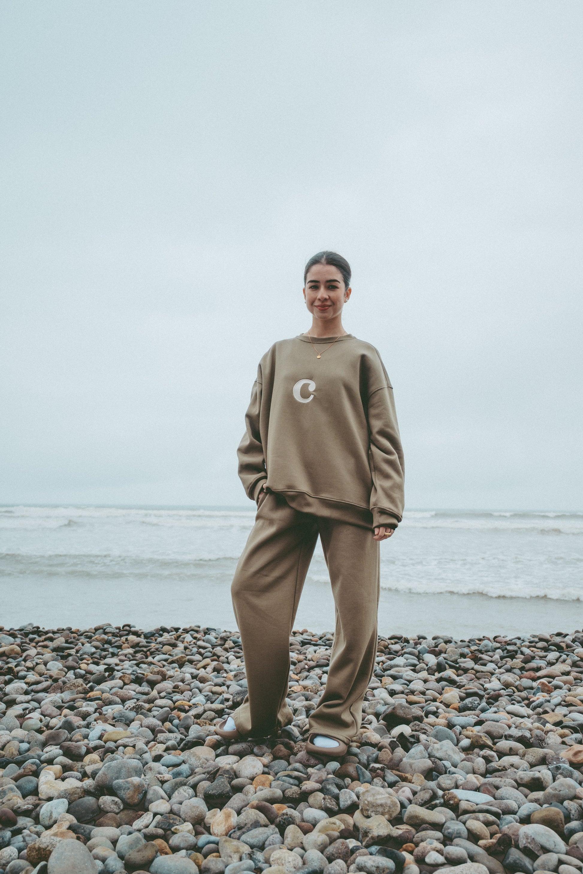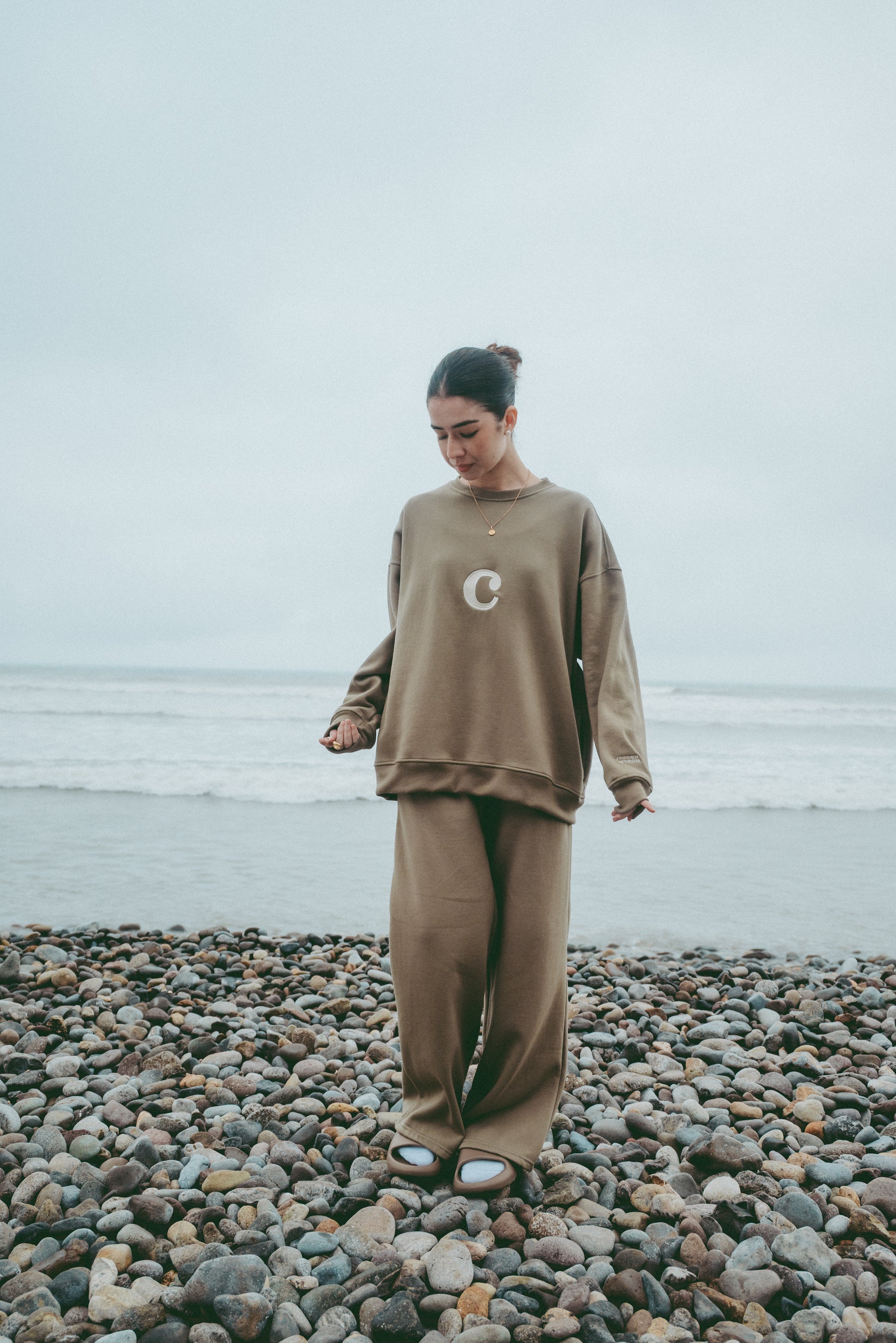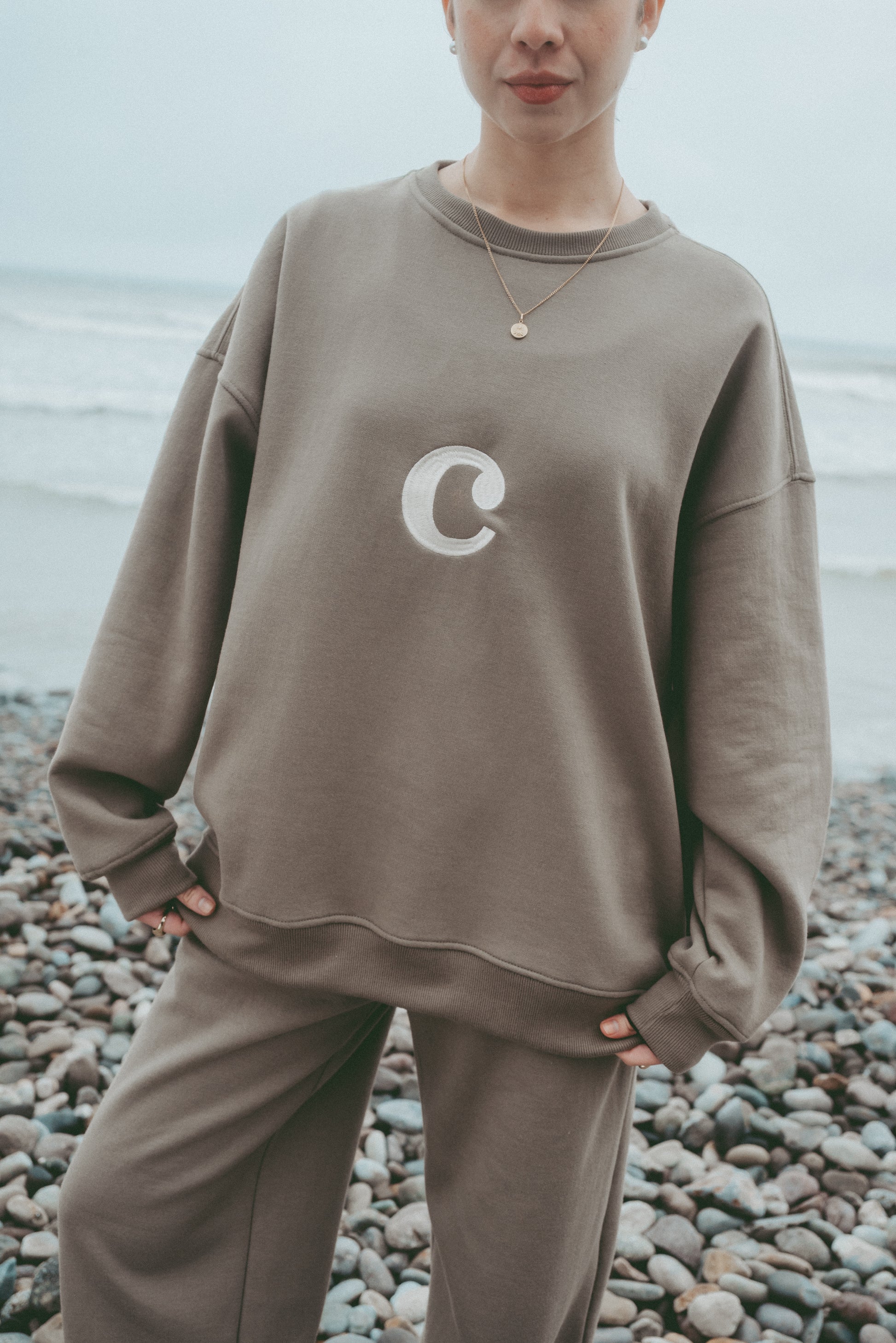 Cuenta con bolsillos laterales, tiene un diseño minimalista y relajado, con cuello redondo y una caída cómoda, pero sin perder forma. En el pecho, lleva un bordado con la letra “C”, y en la manga, una frase que lo dice todo: