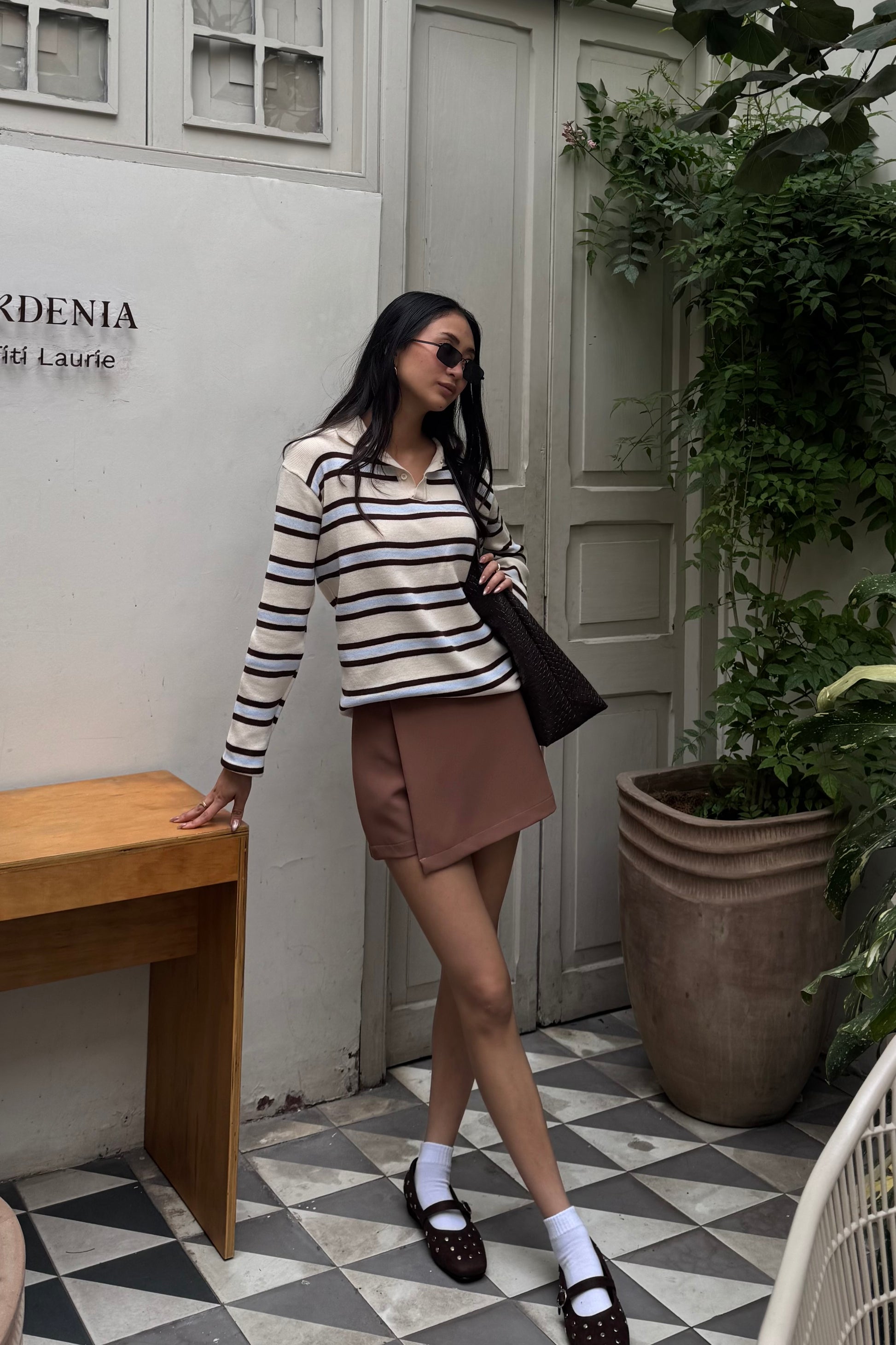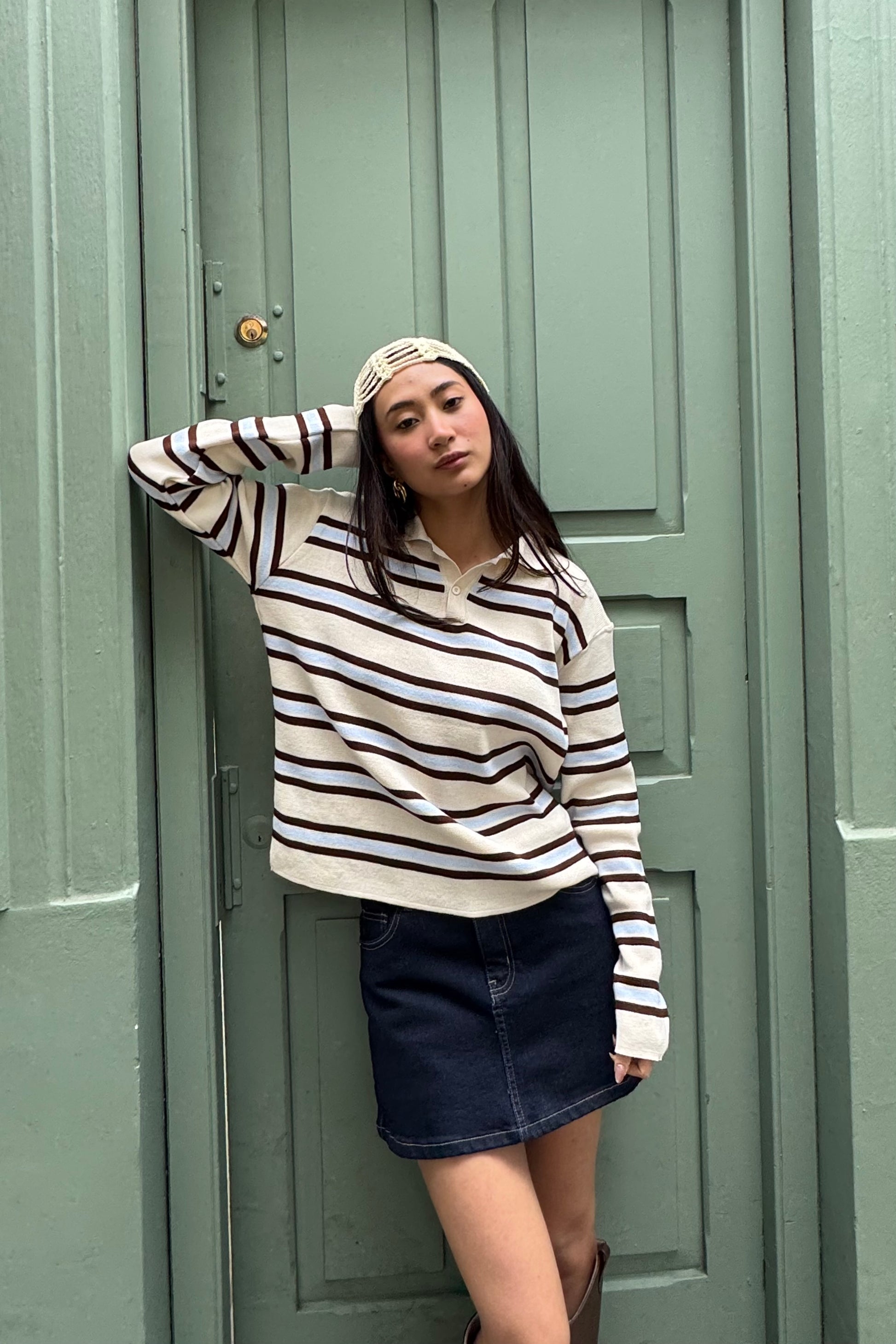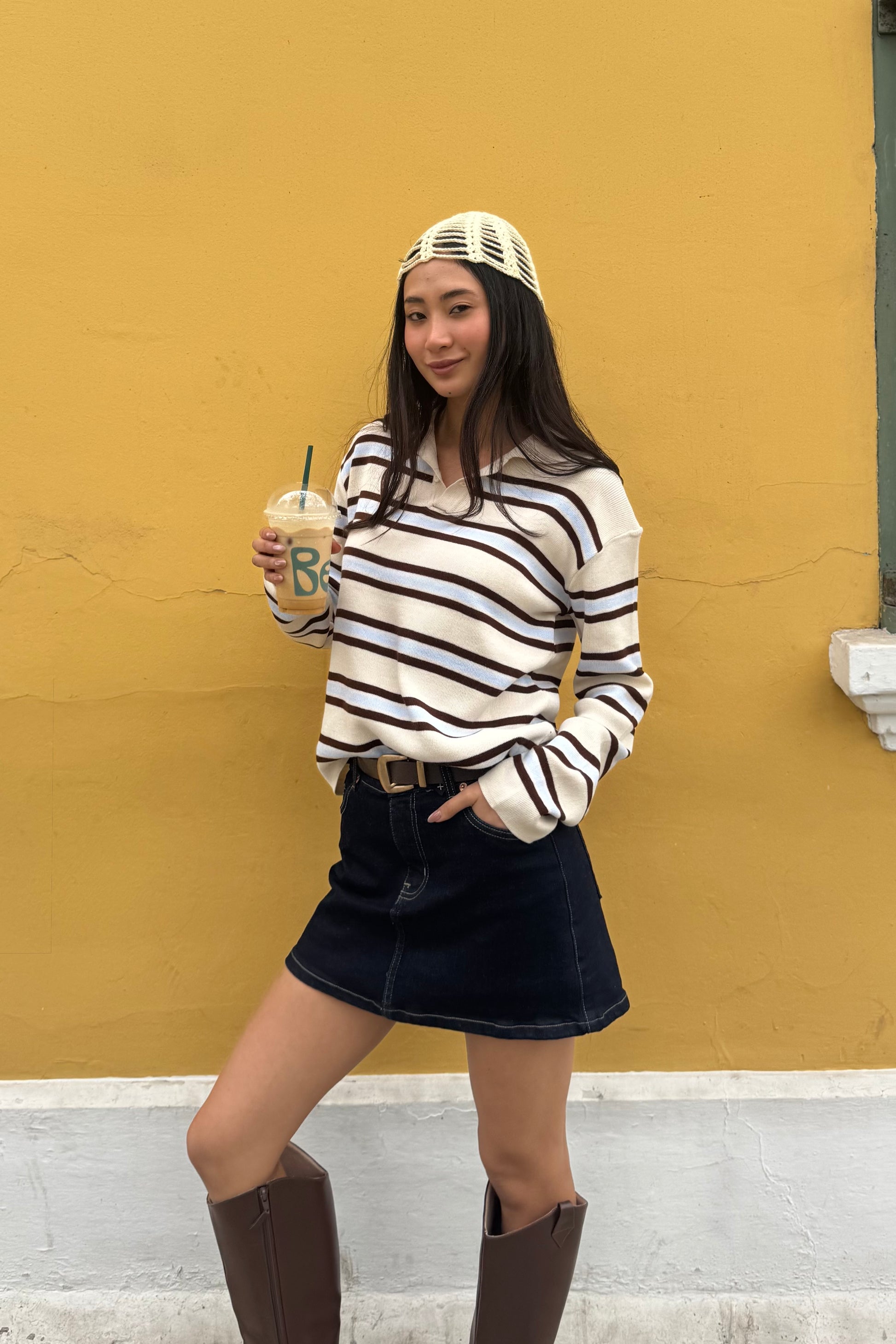 Este sweater de rayas en tacto algodón es de esas prendas que abrigan lo justo y se sienten suaves todo el día 🤎. Tiene un fit relajado que lo hace fácil de combinar, ya sea con jeans o pantalones más clásicos. Es de esas piezas que te salvan cuando quieres estar cómoda, pero con un look que siempre se ve bien.
