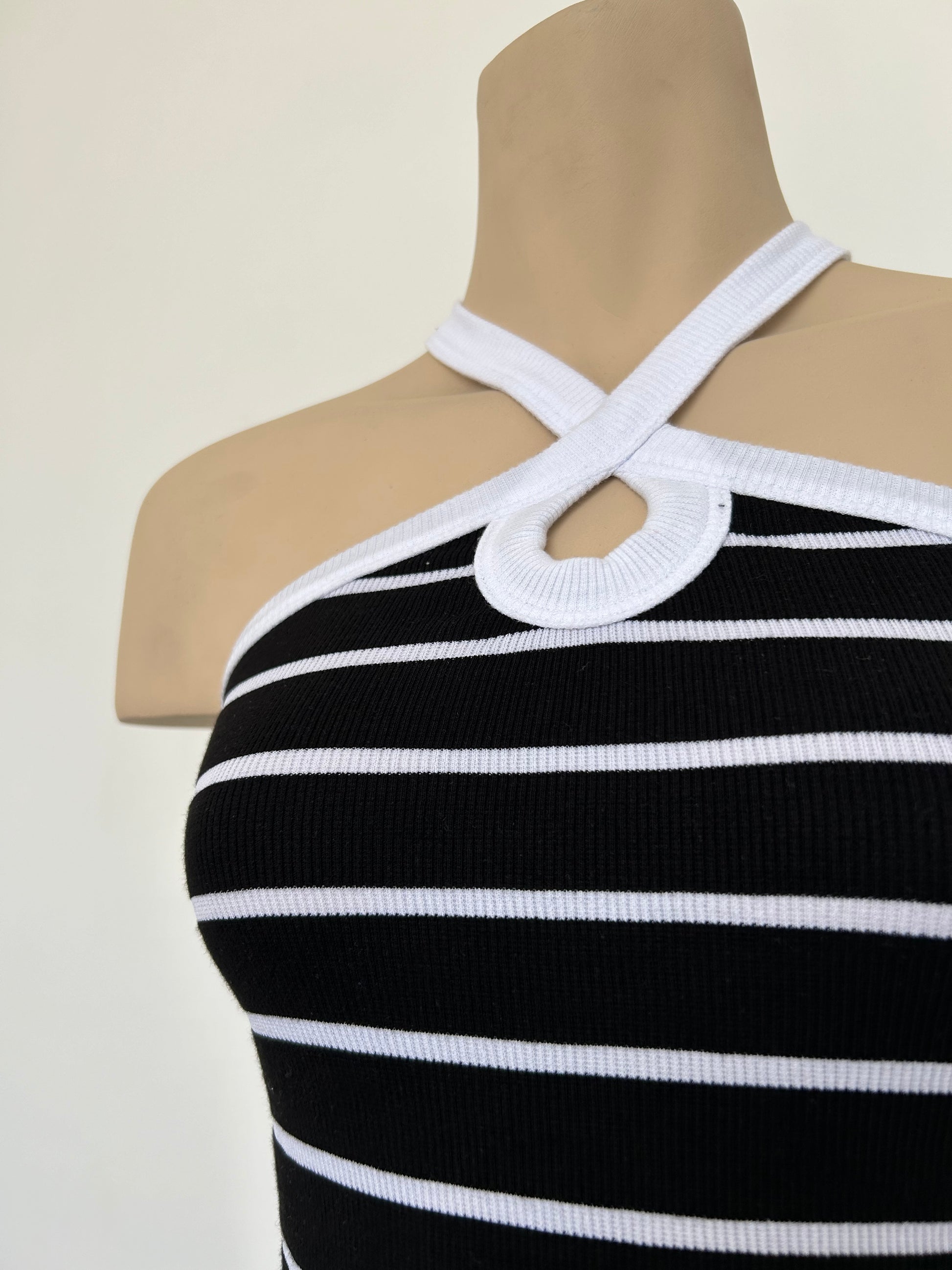 Elaborada en tejido rib algodón, con líneas verticales y ceñido al cuerpo, esta es una increíble opción para este verano