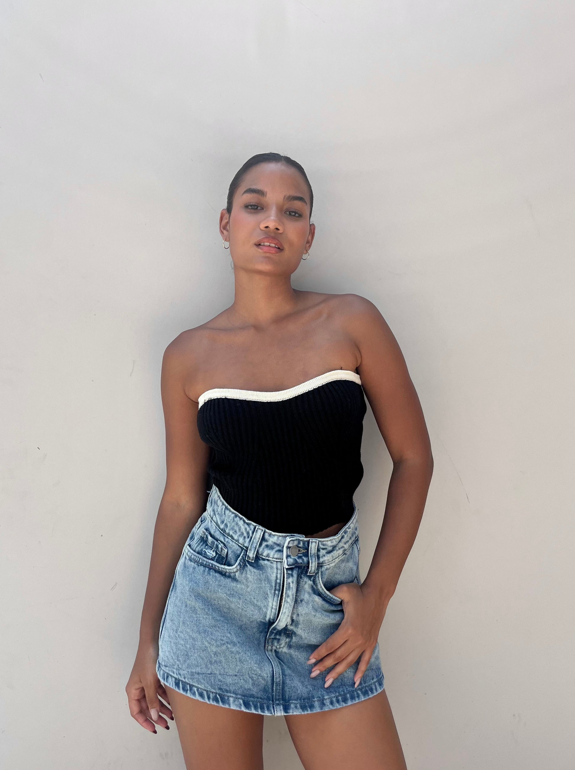 Te lo traemos en esta nueva versión en contraste, junto a su escote en forma de corazón y ese tejido que todas amamos.