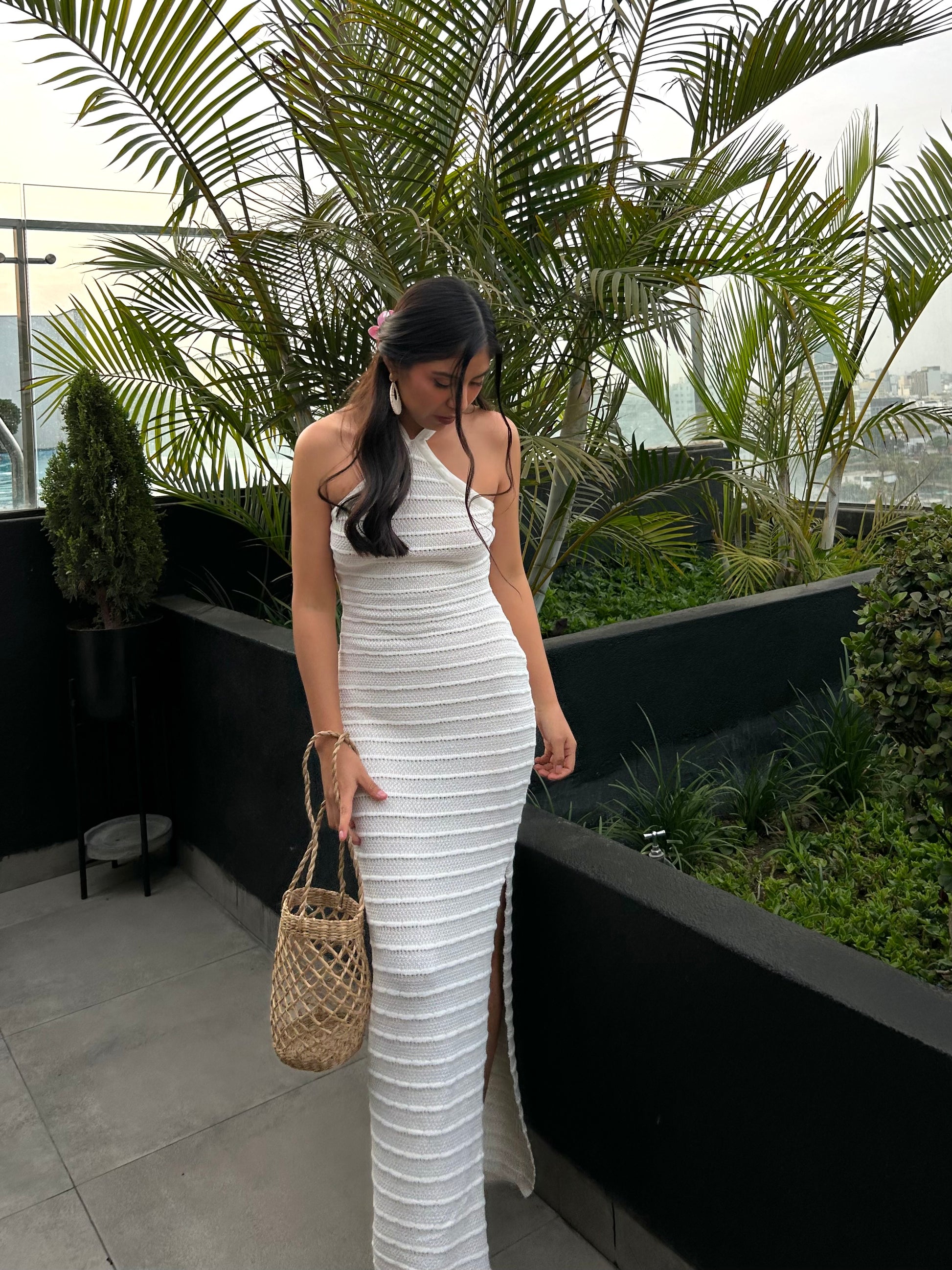 El vestido de playa más bonito de esta temporada🤍elaborado en tejido, con el detalle de líneas horizontales en alto relieve.
