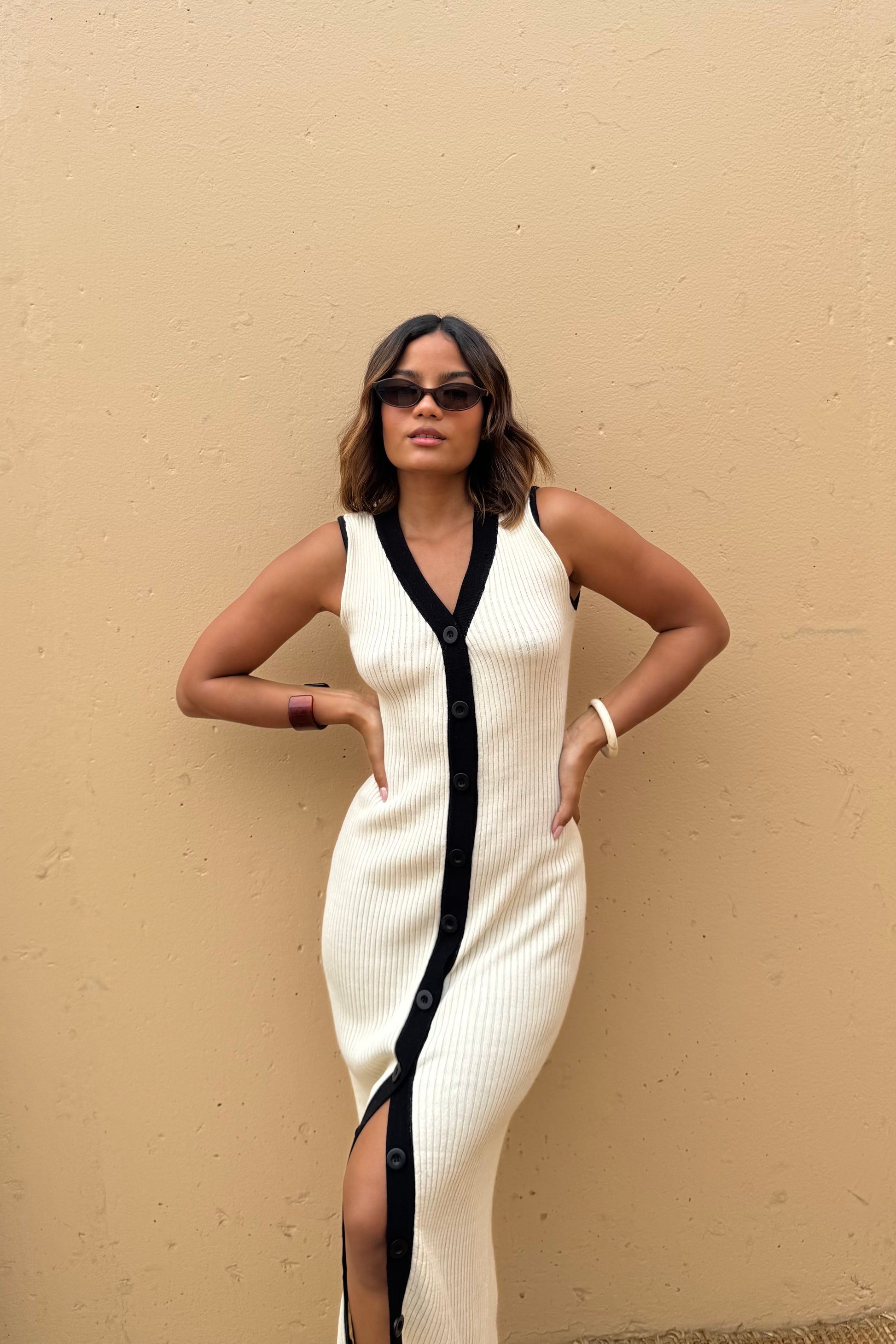 Esta elaborado en tejido tacto algodón y cuenta con un borde en contraste por todo el vestido.