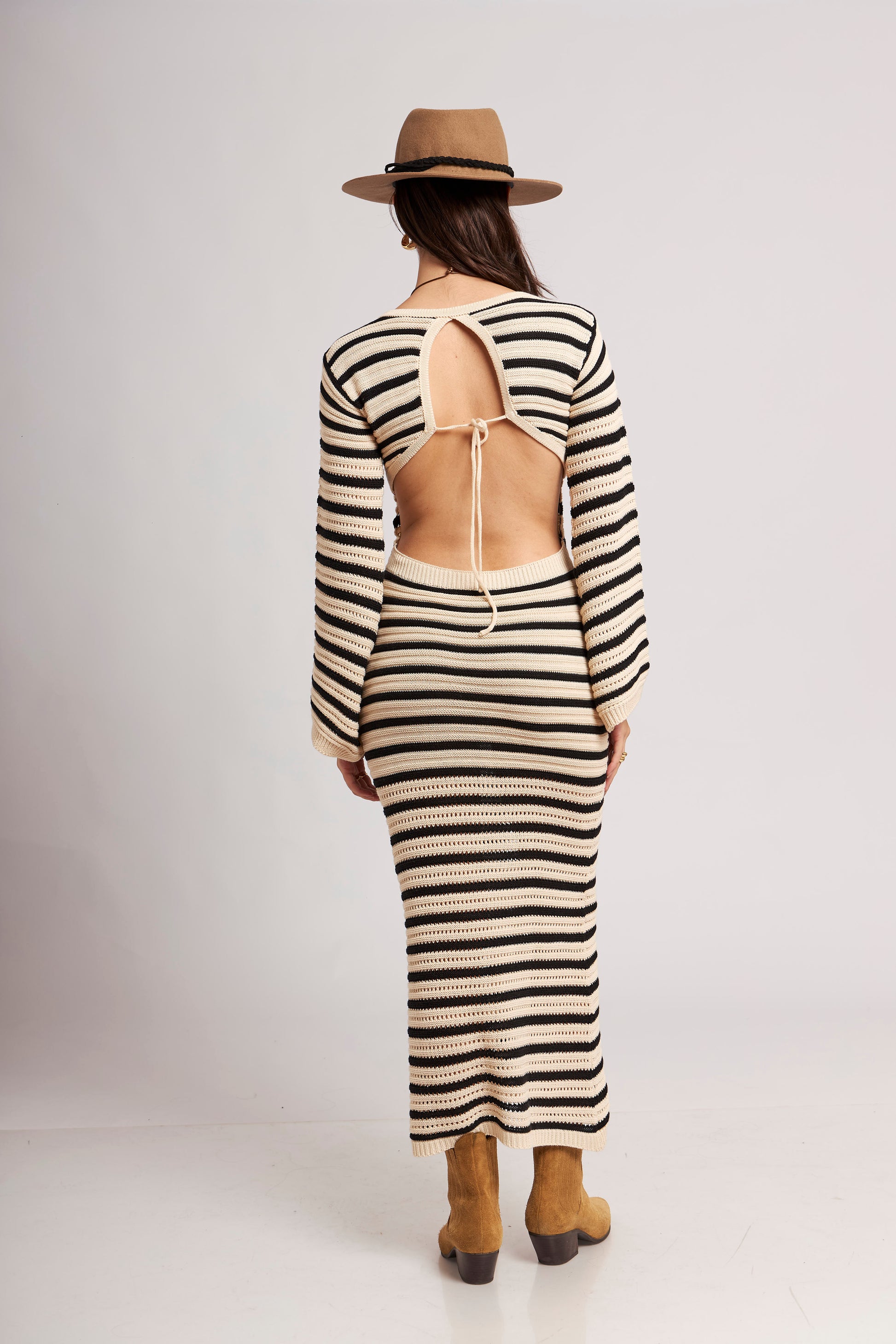 De mangas ligeramente acampanadas y espalda descubierta con el detalle de una pita para amarrar.